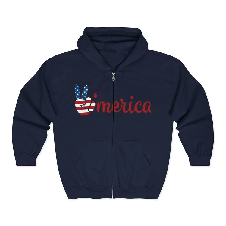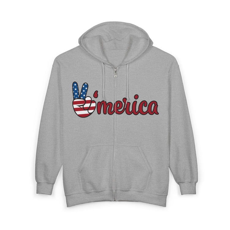 Unisex Zip Hoodie with Patriotic Vibe, Americuh Peace Sign Sweatshirt, Casual Wear for Independence Day, Gift for USA Lovers, Cozy [...]